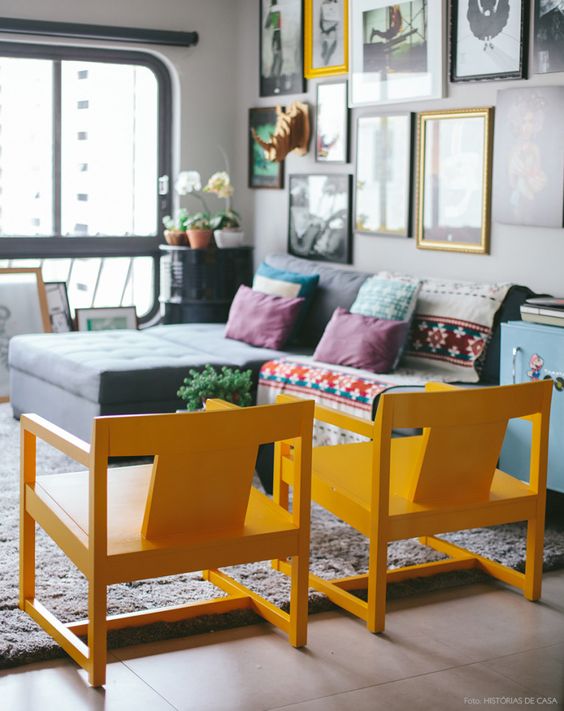 Utilizar cores claras nas paredes dá a impressão de amplitude, além de melhorar a iluminação e valorizar a luz natural. Não se limite apenas a tons de branco, cinza ou bege; aposte em toques de cores vivas em outras partes da decoração, como nos móveis e almofadas. Ter uma das paredes em tons mais iluminados e abertos, como amarelo ou azul claro, também faz uma grande diferença e dá mais vida ao ambiente.