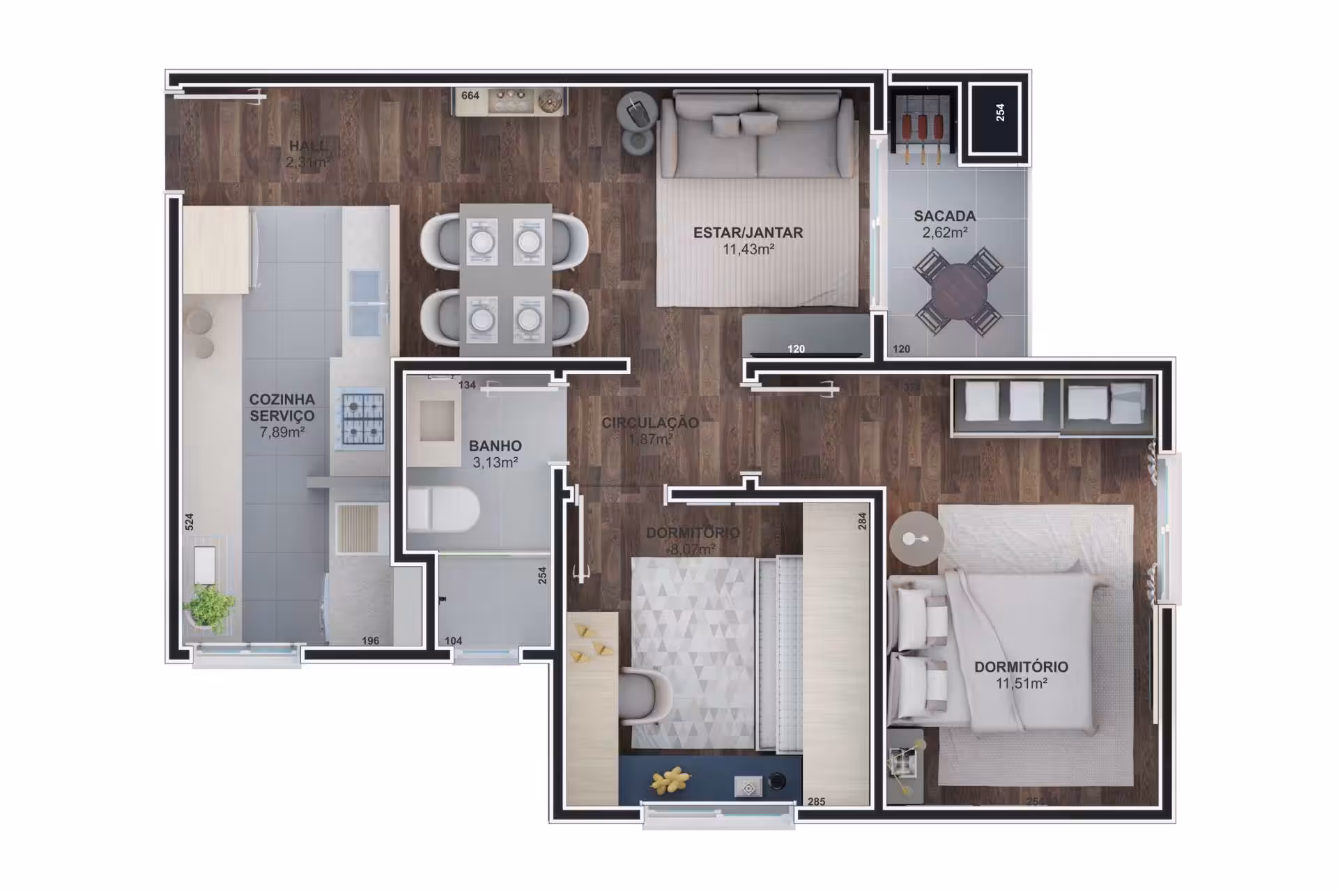 Aptos 2 dormitórios - 57,34m²